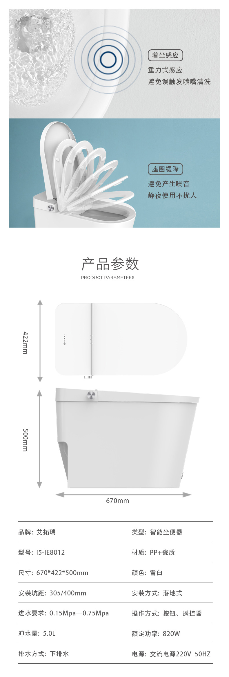 產(chǎn)品型號(hào):iE8012 智能馬桶