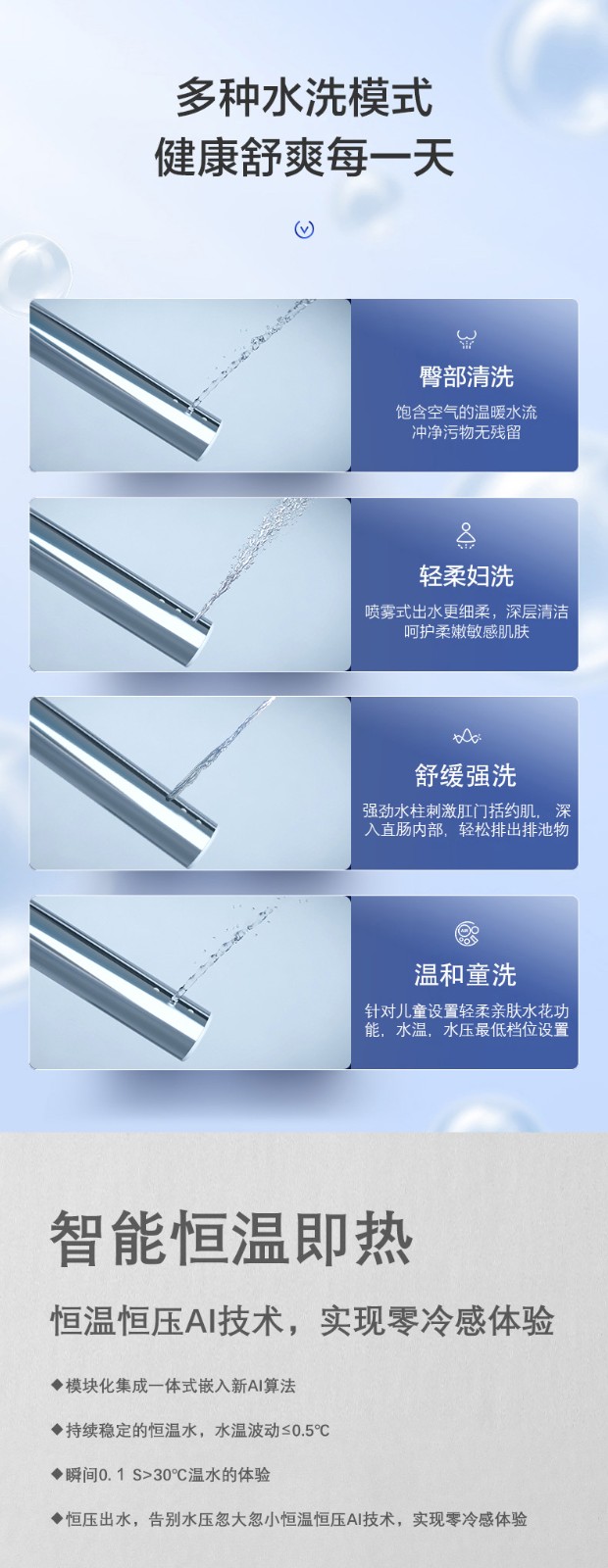 4、溫水潔身、暖風(fēng)烘干、